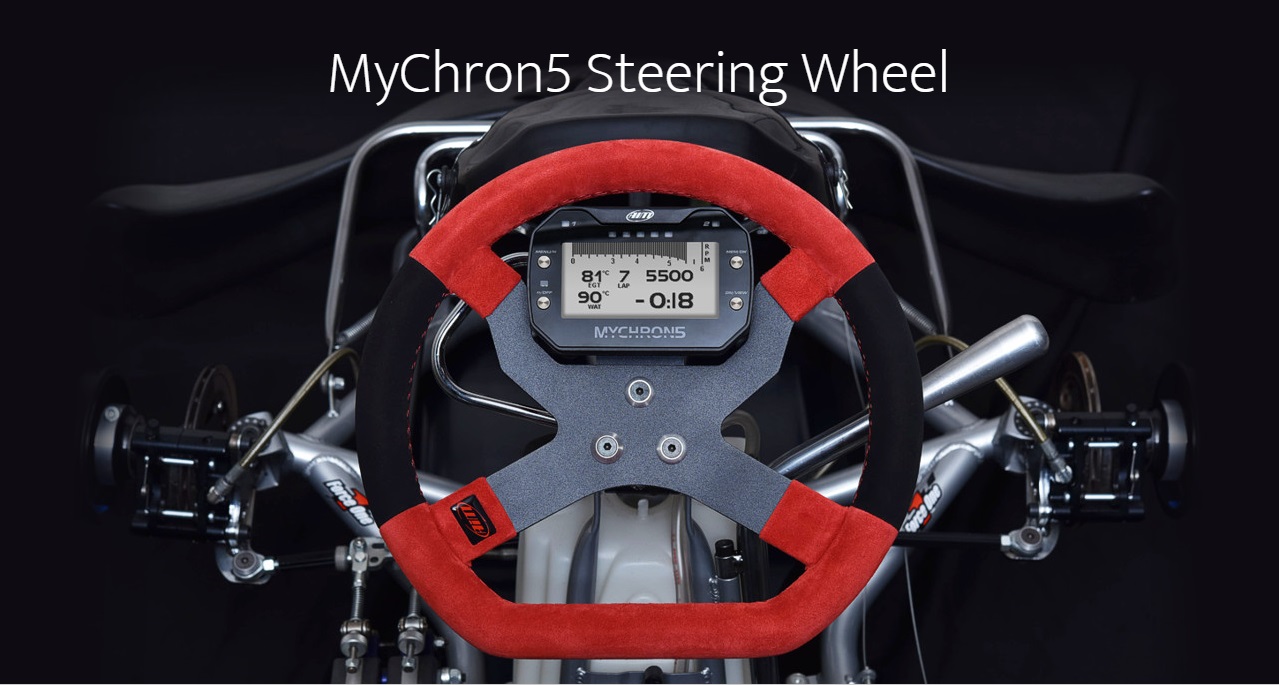 Available in two colors (red/black or black) with 3/6 holes, the MyChron5 Steering Wheel has been designed to fit all types of kart.